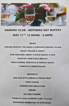We are offering a yummy Buffet spread this year for all those lovely Mums, so make a booking and come on in and enjoy this yummy feast. $40.00 pp Booking essential